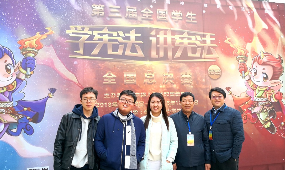 法学专业本科生童鹏、张航溥、毛佳钰与区内其他院校代表组成宁夏回族自治区代表队赴京参赛,最终获得大学生辩论赛团体三等奖,知识竞赛二等奖,张弛和张蕊老师获得优秀指导教师奖。