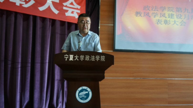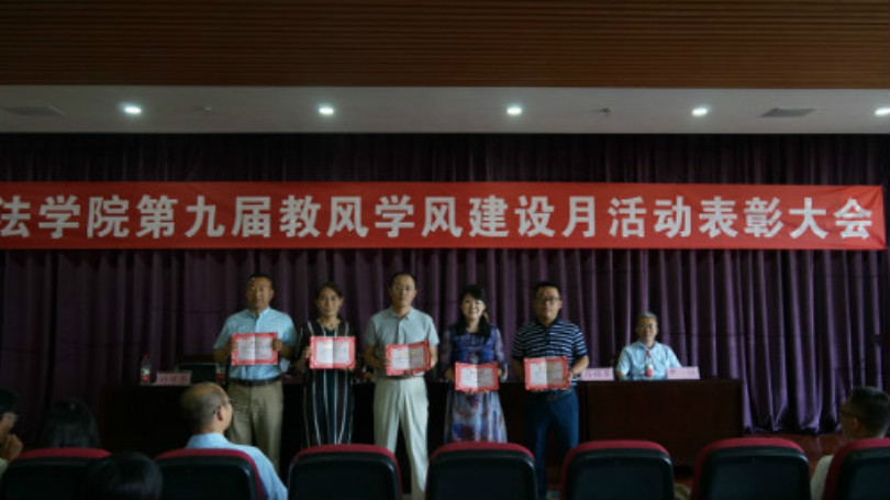 在文荟楼模拟法庭隆重召开表彰大会,对在教风学风建设月中表现突出的先进集体和个人进行集中表彰。