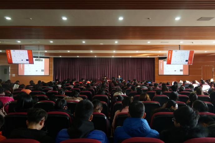 团委书记卢烨主持,党委副书记崔明堂担任主讲人,15级、16级、17级全体同学到场聆听。