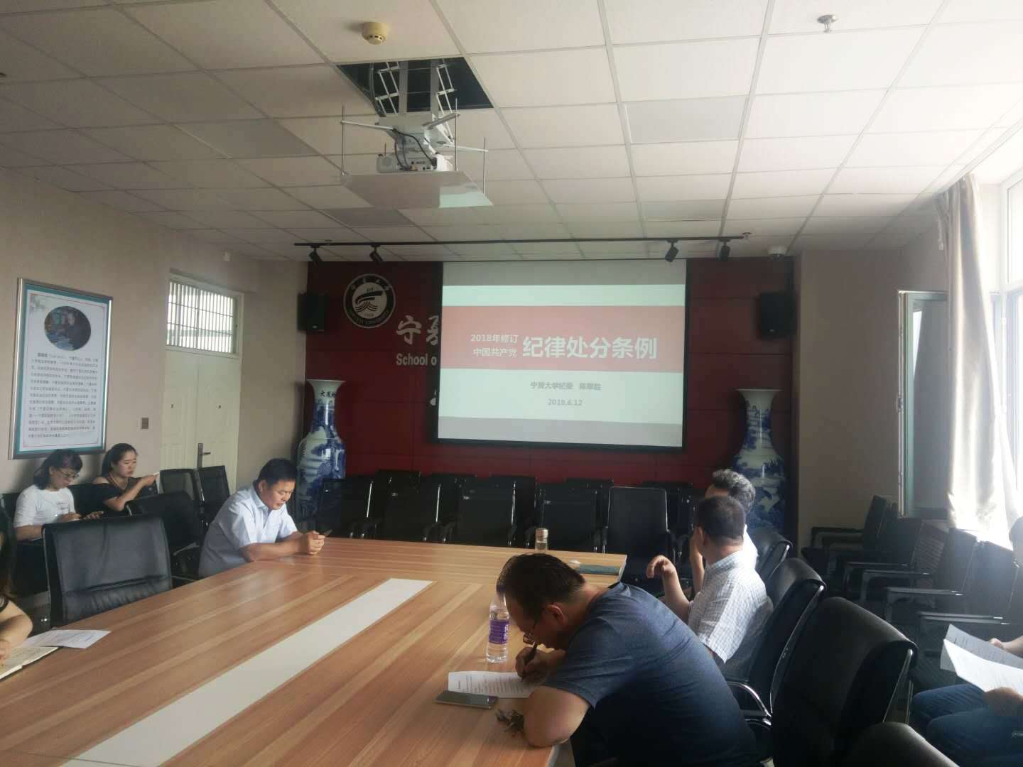 陈军胜副书记还单独用一部分内容来给大家介绍了一些违反条例的典型案例,并结合我们身边的实际案例来讲解,通过这种深入浅出的方式让我们教师党员对条例内容有了深刻的理解。