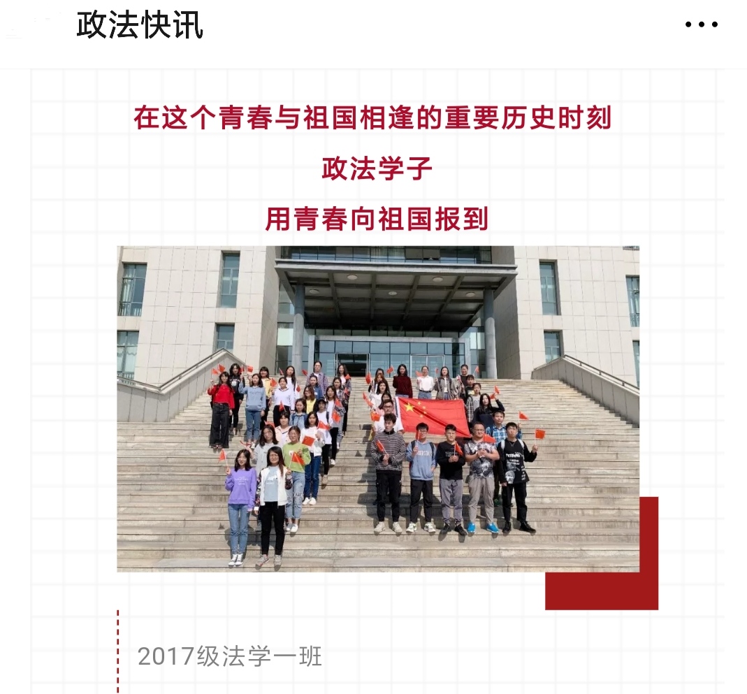 官方微信公众号还推出了国庆特别策划栏目——《国庆节|用青春向祖国报到》,政法学子通过各种形式,向祖国表达美好祝福。