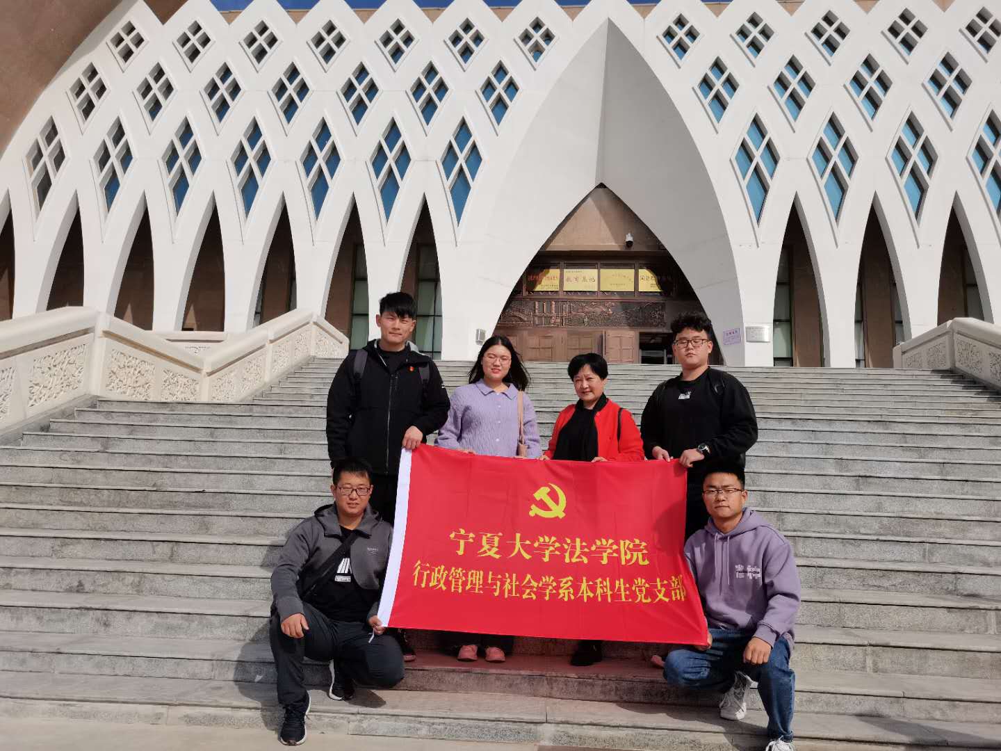 师生一行在红寺堡弘德村开展主题党日活动。行政与行社系教工党支部、行社系本科生党支部、法律系研究生党支部的党员师生及2019级、2020级社会工作全体专硕研究生参加了本次活动。