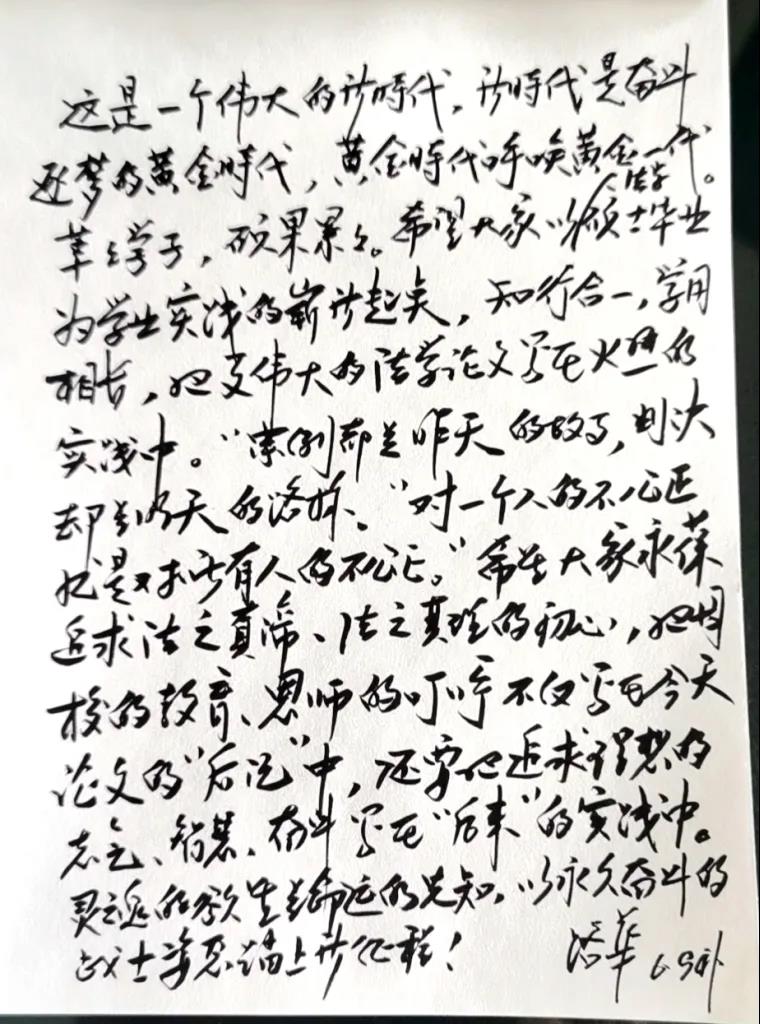 法学理论专业答辩委员会主席、银川市中级人民法院路华院长寄语毕业生:这是一个伟大的新时代,新时代是奋斗逐梦的黄金时代,黄金时代呼唤黄金一代。莘莘学子,硕果累累。希望大家以法学硕士毕业为学业实践的崭新起点,知行合一,学用相长,把更伟大的法学论文写在火热的实践中。“案例都是昨天的故事,判决却是昨天的路标。对一个人的不公正就是对所有人的不公正。”希望大家永葆追求法之真谛,法之真理的初心,把母校的教育,恩师的叮咛不仅写在今天论文的“后记”中,还要把追求理想的志气、智慧、奋斗写在“后来”的实践中。灵魂的欲望是命运的先知,以永久奋斗的战士姿态踏上新征程!