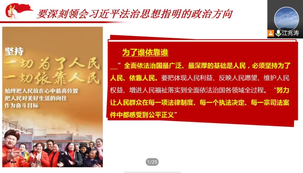 于11月10日下午组织开展《习近平法治思想概论》第三讲“习近平法治思想核心要义(第一部分)”主题线上讲座。本次讲座由江兆涛老师主讲,玩游戏赚钱app