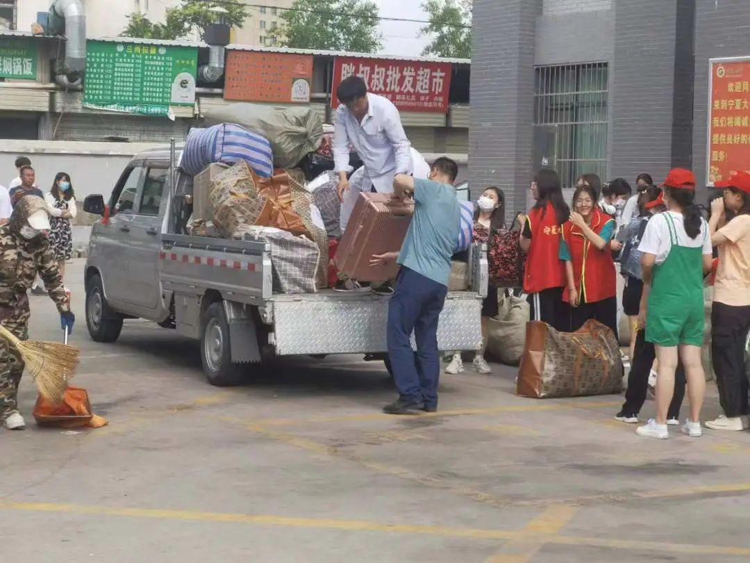 党委书记李治涛、院长吕耀军、党委副书记杨扬、学生工作办公室主任王嘉豫、辅导员付晓晨前往现场指挥、协调搬迁工作,另有30余名志愿者参与其中,共同助力搬迁工作顺利进行。在贺兰山校区的搬迁现场,李治涛书记亲自上阵,协助同学们将行李装车。