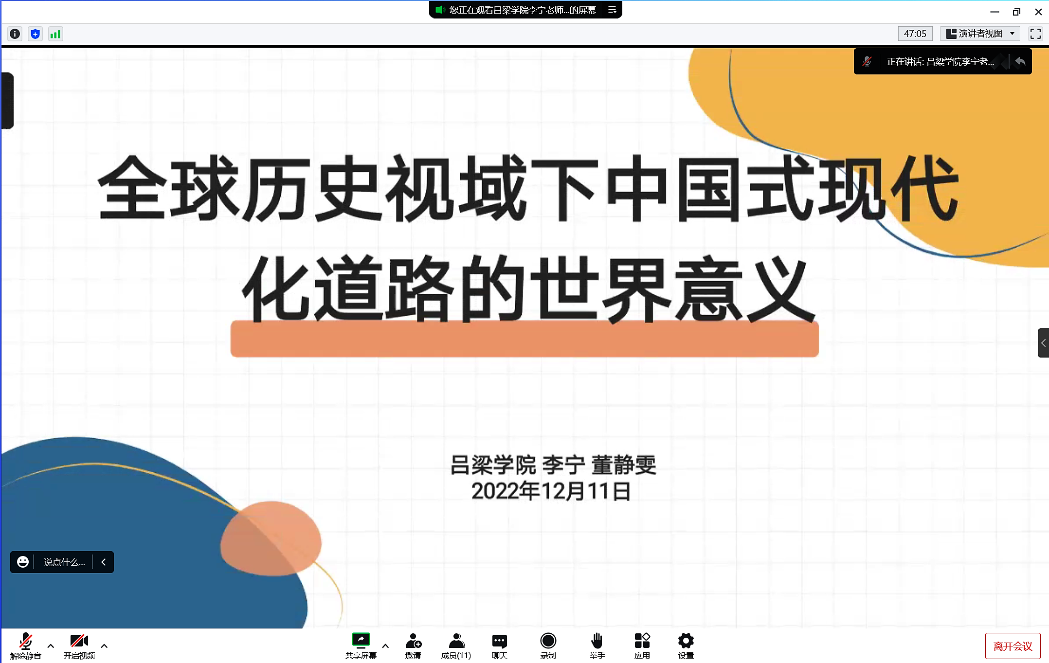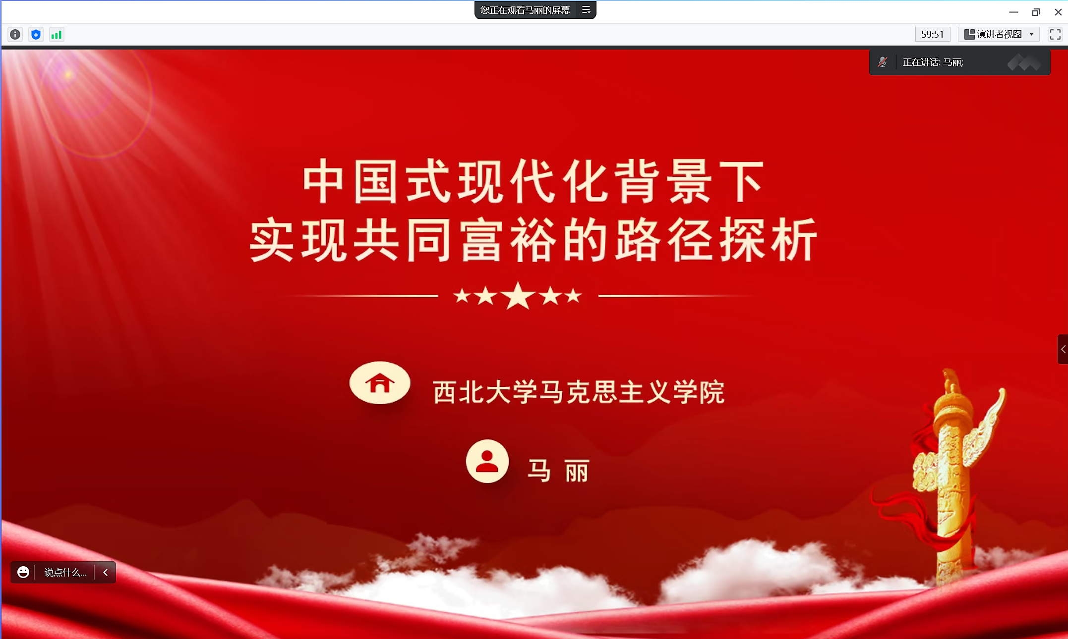 论坛中,李保平认为要多点发力、齐头并进,以多种维度统筹推进宗教事务治理;曾吉卓玛认为实现有效的乡村治理是受多方面的影响;李宁为我们阐述了全球历史视域下中国式现代化道路的世界意义,为世界人民发展与进步提供了中国方案和中国智慧;马丽以中国式现代化背景下实现共同富裕的内涵特征和实践路径两部分进行了详细的探讨;赵详云指出,要根据不同组织和多元主体的特点和性质,研究治理共同体建设更具可行性和现实性的途径;章志敏结合案例阐述了阶层认同变化的结构性动力,对中国少数民族的界限APC进行了分析;周亚平为我们探讨中国社会发展新阶段中的乡村振兴和社会治理问题提供了新角度。