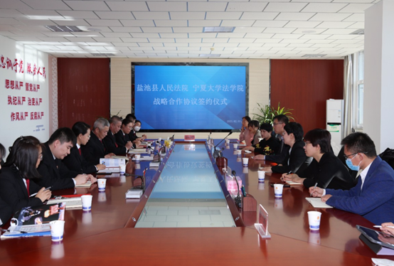 党委书记李治涛、副院长胡世恩、系室负责人及教师代表,盐池县法院部分领导及各部门负责人参加签约仪式。