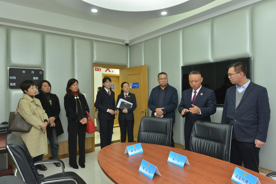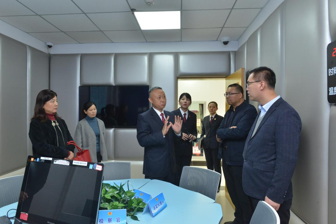 参会代表先行参观了兴庆区人民检察院荣誉展示厅、图书阅览室、未成年人办案区、党建活动室、12309检察服务中心、“石榴籽”检察工作室以及案件管理中心,王建军同志介绍了兴庆区人民检察院的队伍建设、检察品牌以及未成年人案件基本情况。