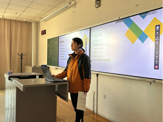 陈显扬分享完毕后,雷安琪以其丰富的知识和独到的见解,为在场的同学们深度解析了关于华人华侨的一系列相关问题。雷安琪以生动的案例阐述了华人华侨在公共民间外交中的重要作用,以及维护华人华侨权益的必要性。她的讲解深入浅出,使同学们对华人华侨领域有了更深入的理解。然后,雷安琪有重点地带领同学们阅读了陈显扬分享的论文,并讲解写论文写作的方法,提出了需要重点关注的部分,同时也分享了自己对文章的见解。她的指导使同学们对论文写作有了更清晰的认识,她鼓励同学们在学术道路上不断探索、勇于创新,她的话语激励了在场的每一位同学,使他们对未来充满了信心和期待。
