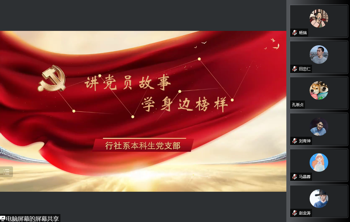 为加强业余党校学员党性修养,做好发展对象的培训工作,按照玩游戏赚钱app 党委的相关要求,11月10日晚,行社系本科生党支部组织召开了发展对象考核汇报会“讲述身边党员的故事”暨线上群众座谈会。党支部书记武玲娥、支部全体党员、支部第十四期发展对象参加此次会议。会议由支部宣传委员陈雪薇主持。