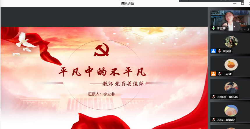 汇报结束后,王嘉豫对每位同志的汇报进行了细致点评。她鼓励大家要从讲述的十位党员的故事中受到启发,以他们的先进事迹为榜样,及时找准前进坐标与着力点,在同学当中把吃苦耐劳的形象树起来,把榜样作用发挥出来,通过互相带动、示范和引领,促进周围更多的学生奋发进取,成长成才。她希望大家要进一步坚定理想信念,保持奋斗姿态,以青春之我担时代之责,努力成为堪当民族复兴重任的时代新人。