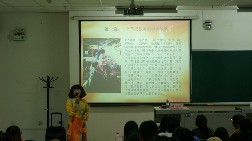 思想政治教育与哲学系特别邀请了银川市九中陈昭娣老师在贺兰山校区文荟楼232教室作了有关师范生职业选择专题报告,系内教师代表和全体学生到场观摩聆听。
