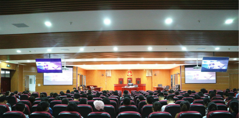 在贺兰山校区文荟楼模拟法庭组织观看禁毒题材电影《湄公河行动》。2017级全体同学到场观影。