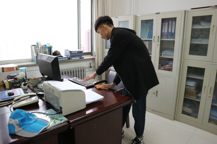 会议室和模拟法庭进行黑板、桌椅、地面等清扫工作。在打扫卫生的过程中,志愿者们学着干、抢着干,一个个干劲十足、毫不懈怠,积极用实际行动诠释着“雷锋精神”。