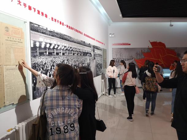 大家都安静认真地参观着每一件展品,透过一个个实物、图片和文字讲解,同学们仿佛穿越到了那个年代,触摸到了那个时代更多的细节:有满眼的黄沙、有荒凉裸露的土地和不知疲倦的共产党人。透过那个细节我们看到了老干部们如何在艰苦的环境中保持昂扬向上的精神风貌,看到了他们如何在艰苦的环境中依然选择奉献自己的聪明才智。