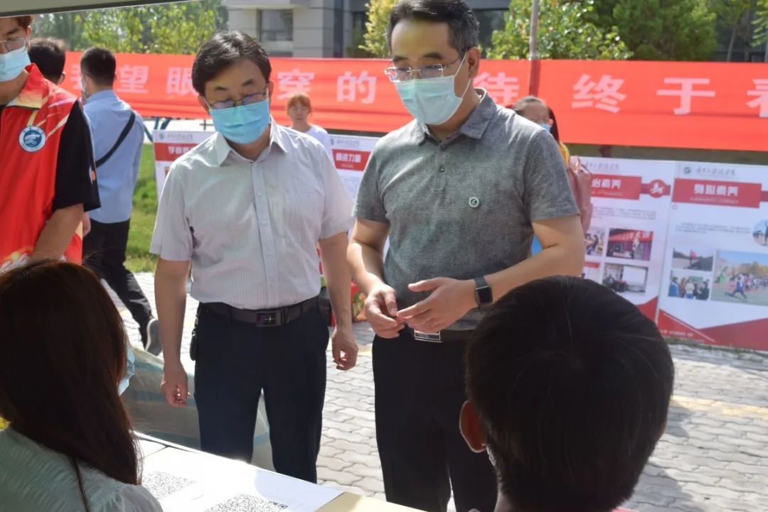 院党委书记潘瑞,党委副书记杨扬,新生班主任马浩丹老师、本科生辅导员王嘉豫,对迎新注册工作进行指导。潘书记与新同学们亲切交流,询问新生的家乡、来到玩游戏赚钱app
