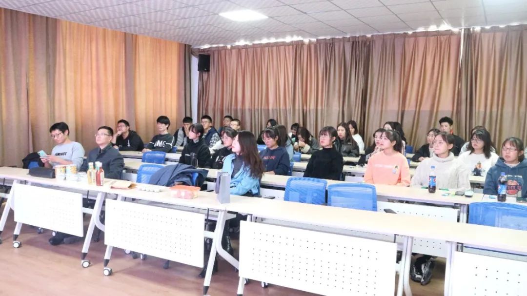 马浩丹老师担任此次活动的主持人,马斌老师主讲,法律系部分本科生到场聆听。