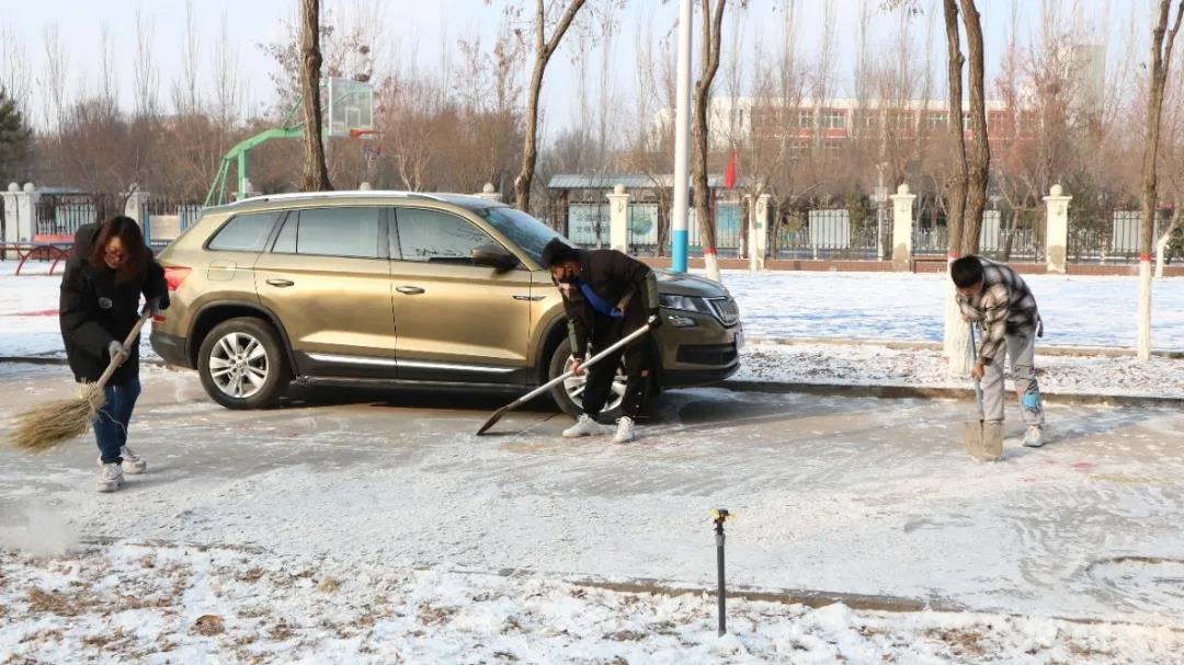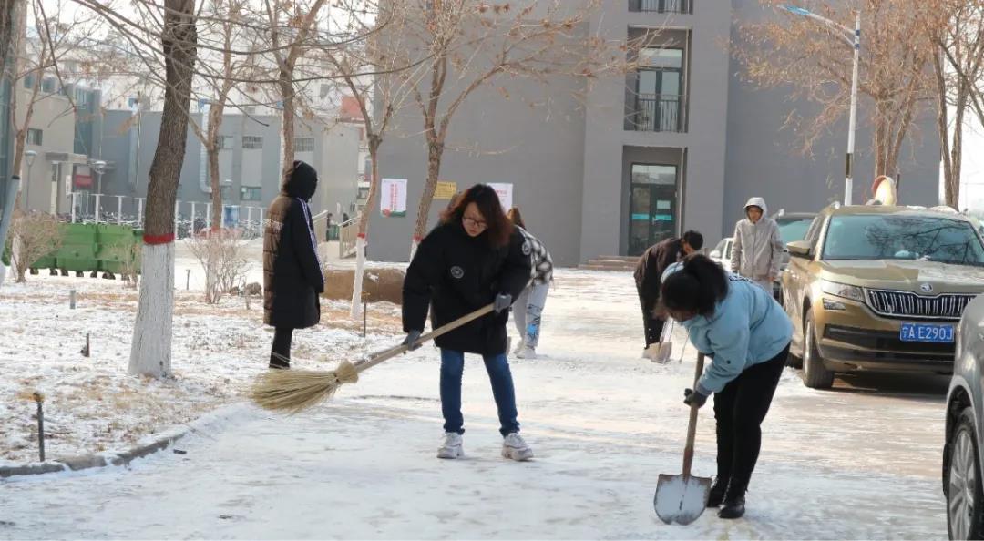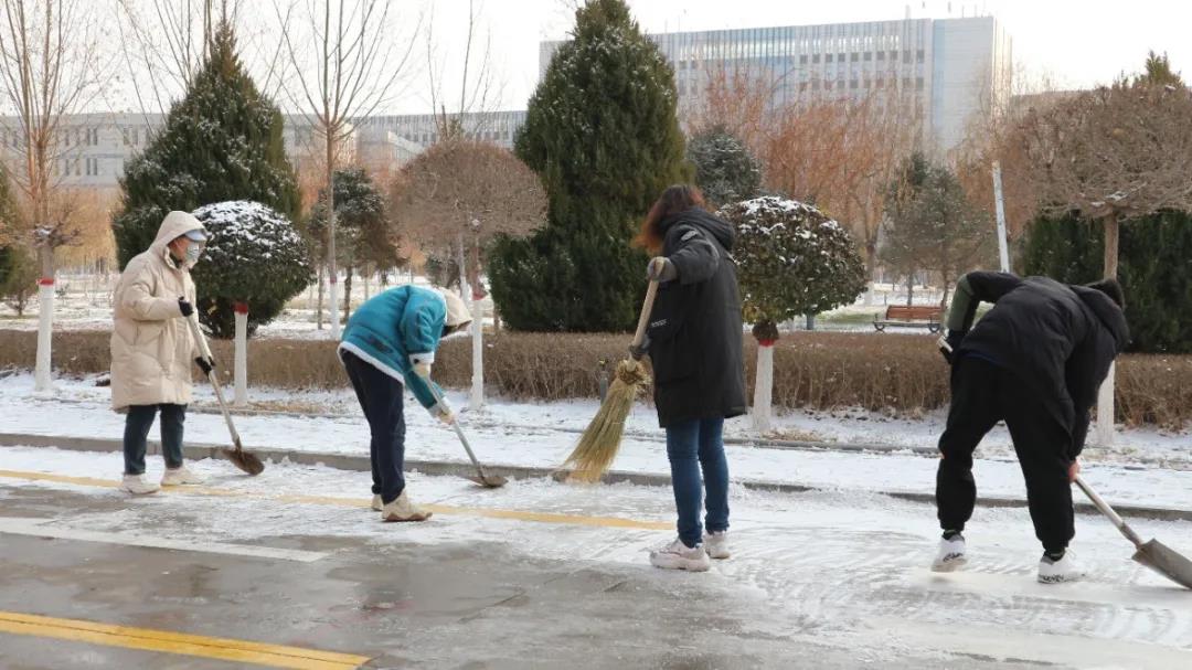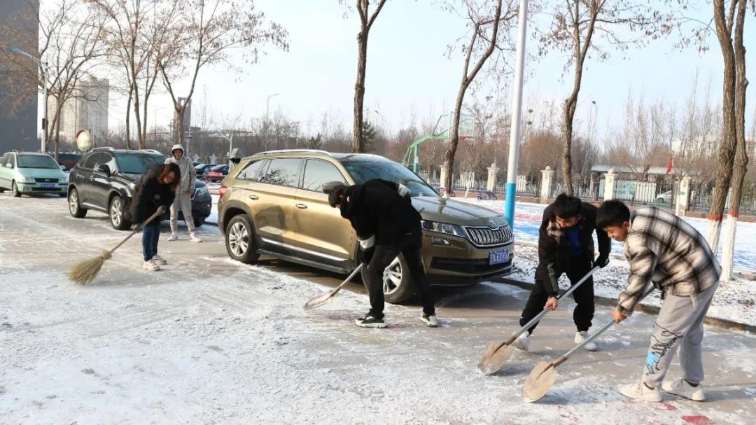 副书记杨扬带队组织学生扫除积雪,来自18、19、20三个年级的五十余名志愿者参与此次活动。