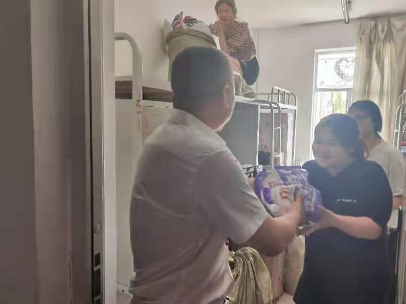 党委书记潘瑞,院长吕耀军,副书记杨扬,副院长靳永雄、马金龙分别深入金凤校区、贺兰山校区学生宿舍协调搬迁工作,与搬迁学生亲切交流,了解搬迁情况,并为学生发放慰问品。