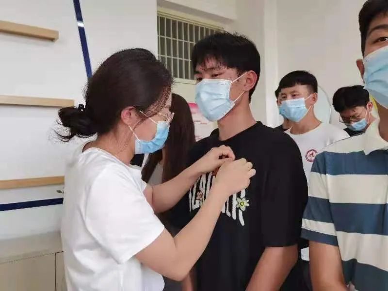 入团仪式在庄严的国歌声中拉开序幕。主持人宣布了新发展团员名单,王嘉豫为新团员佩戴团徽。闪闪的团徽佩戴在左胸前,新团员们的组织感和荣誉感油然而生。在新团员入团宣誓环节中,同学们满怀敬意地读出神圣而庄严的入团誓词,更加坚定了自己为共产主义事业奋斗的决心。2020级团员代表马岩宣读了《中国共产主义青年团章程》中有关团员权利和义务的相关规定,让新老团员再一次明悉了自己的责任和使命。入团仪式最后,王嘉豫对新团员提出了要求和期许,希望新团员时刻牢记自己是一名共青团员,自觉加强组织性和纪律性,同时激励老团员们也要不忘初心、砥砺前行,以身作则带领同学们勤奋学习、提高能力、奋力拼搏,争做新时代的优秀青年。