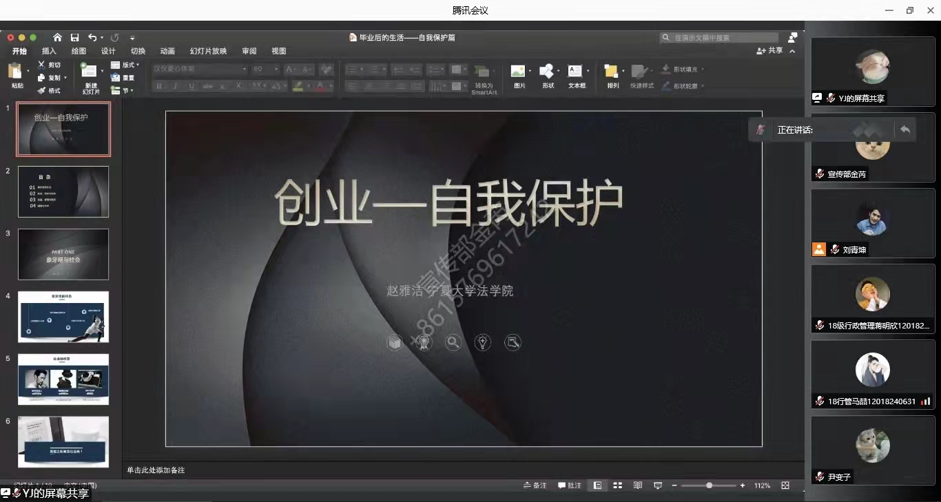 于线上开展“创业——保护自己”主题沙龙,法律系教师赵雅洁为本次沙龙主讲人,2018级本科生参加。