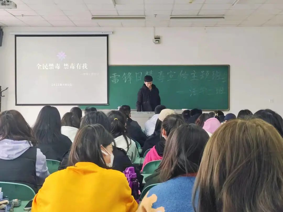 主题班会由毒品种类的讲解切入,使学生对毒品相关知识有了初步了解。此外,毒品的定义、毒品的危害等方面的讲解,为禁毒知识的宣传及学生毒品防范意识的提高奠定了坚实基础。主题班会结束之后,同学们共同观看了禁毒宣传短片,通过真实的案例时刻提醒着同学们牢记毒品危害、保护自身安全。