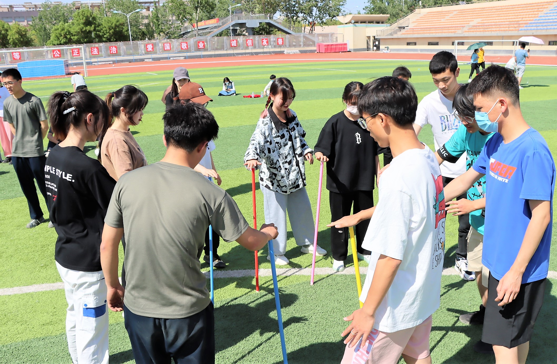 五月初,夏日的骄阳已初显头角,但炎炎烈日难挡学生们洋溢的青春和火热的激情。本次趣味运动会设有八人多足毛毛虫、滚铁环、跳大绳、不倒杆、碰碰球等多个项目,活动现场气氛热烈,既有技巧与能力的竞争,又有团队合作精神和默契程度的考验。“不倒杆”项目考验着选手们的技巧与耐心,是团队合作和个人能力的巨大挑战;堪称童年回忆的“滚铁环”项目,小小的铁环难倒了好多同学;碰碰球项目更是激起一阵欢声笑语,选手们穿戴好碰碰球和护膝等保护设备,在草坪上激烈碰撞着,稍不留意就被撞得人仰马翻。观众们的视线都被赛场情况所牵动,现场的欢笑声、喝彩声此起彼伏。