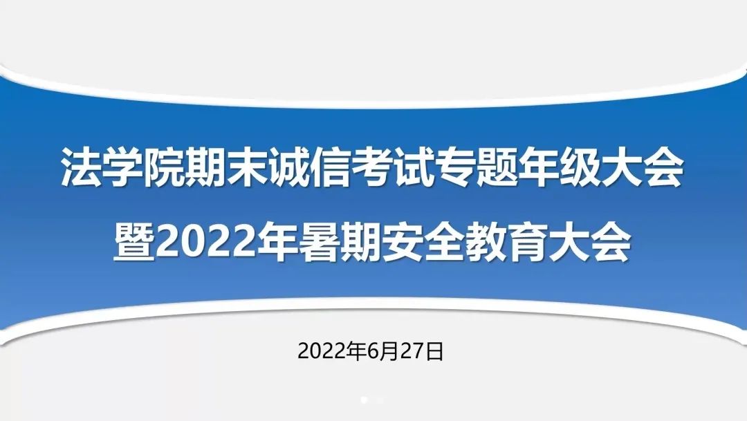 历来重视学风建设和学生安全教育,本次大会的召开进一步增强了同学们的诚信考试意识,树立了良好的学风、考风,同时对同学们在校及假期安全问题做出温馨提示,希望大家能够度过一个安全、充实、愉快的假期,期待每位同学平安返校。