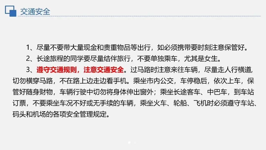和班级报备。在假期警惕一切潜在危险因素,要注意防范电信诈骗,保护个人信息,树立安全第一的自我保护意识。