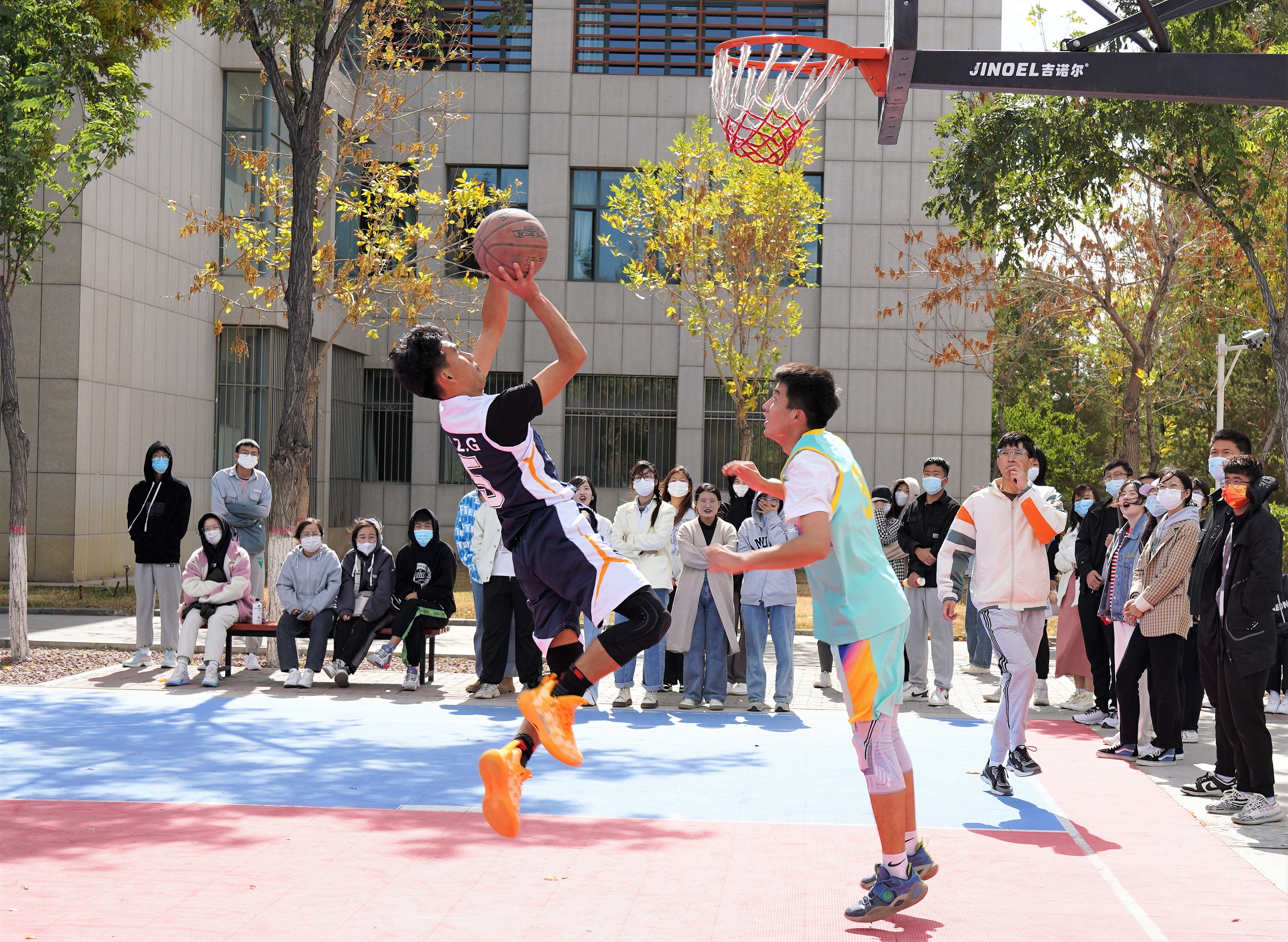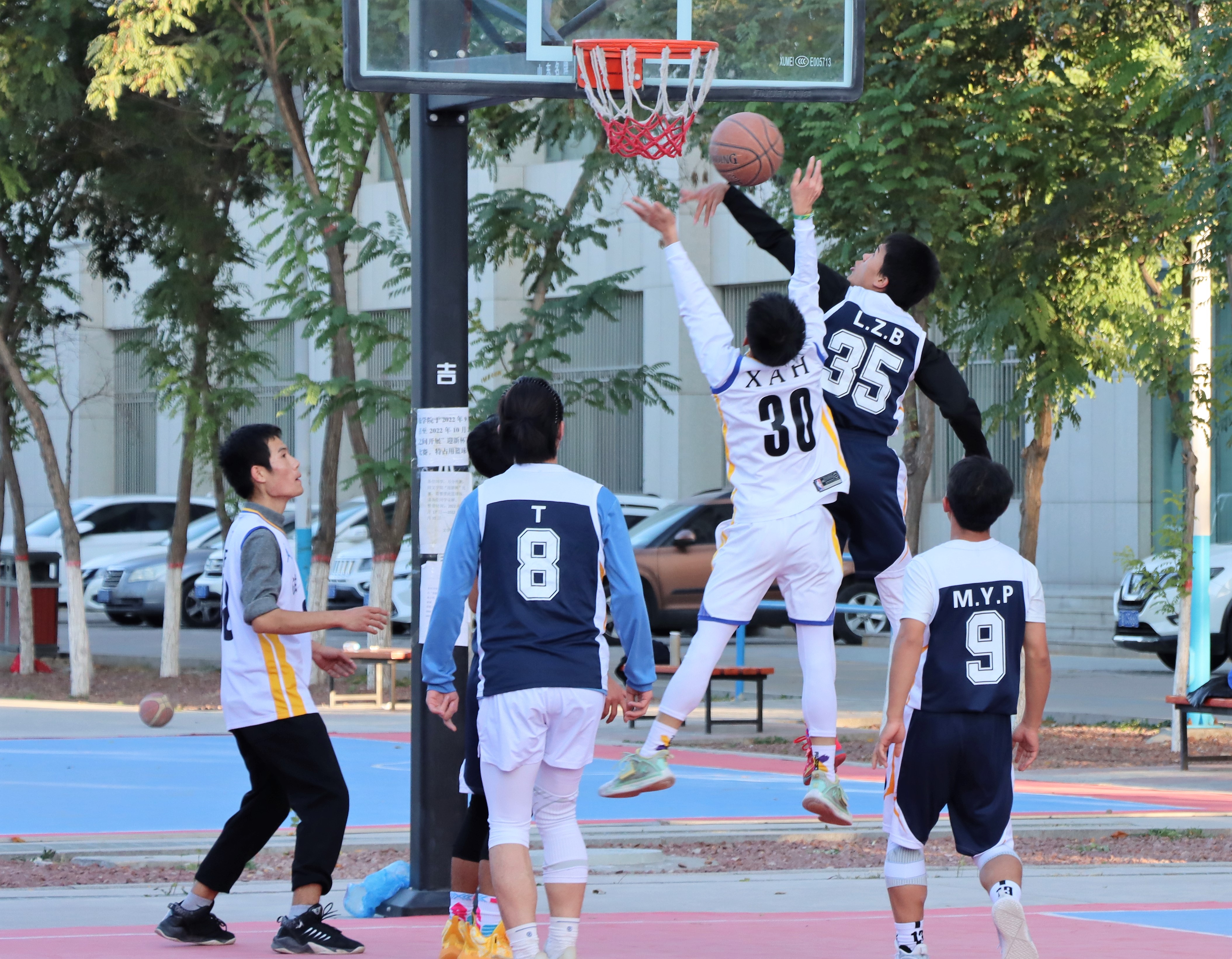 “迎新杯”篮球赛于文荟楼篮球场火热进行中。