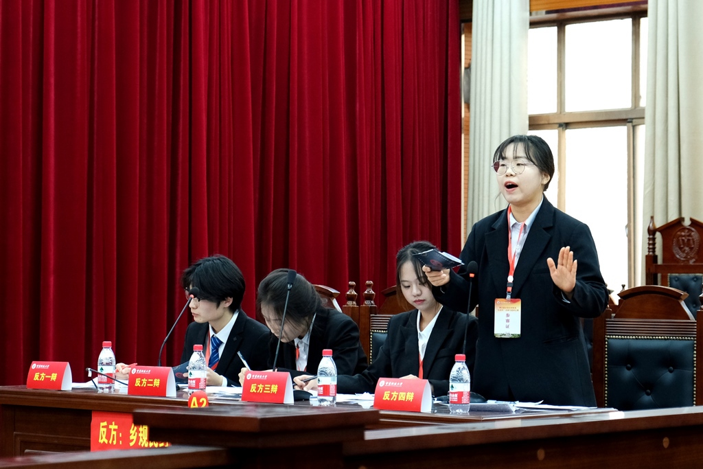 正式比赛阶段,我校代表队首场对阵中南民族大学代表队和甘肃政法大学代表队。初赛辩题为“乡规民约是现代法治必不可少的补充/乡规民约会随着法治水平提高而最终消解”。我校代表队在比赛中以不同的持方与对手展开激烈交锋。队员在比赛中配合密切,台风稳健,既有辩论技巧的娴熟运用,又有专业知识的充分展示,向现场评委和观众展现了宁大学子的良好精神风貌。在小组赛中,我校代表队战胜中南民族大学代表队,负于东道主甘肃政法大学代表队,未能晋级复赛,最终获得本次辩论赛优秀奖,战奇同学获得“最佳辩手”称号。