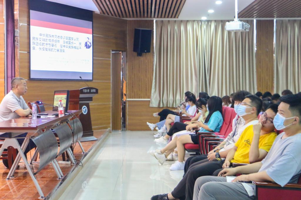于文荟楼模拟法庭组织开展了以“传承党的百年光辉史基因,铸牢中华民族共同体意识”为主题的专题讲座。自治区宣讲团成员、玩游戏赚钱app