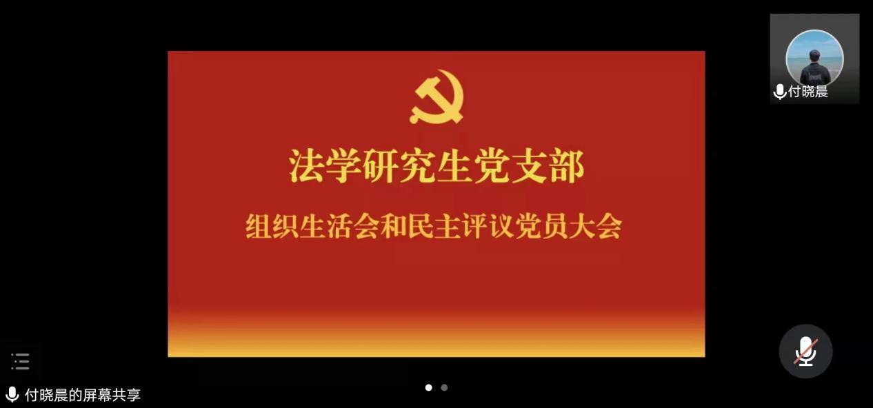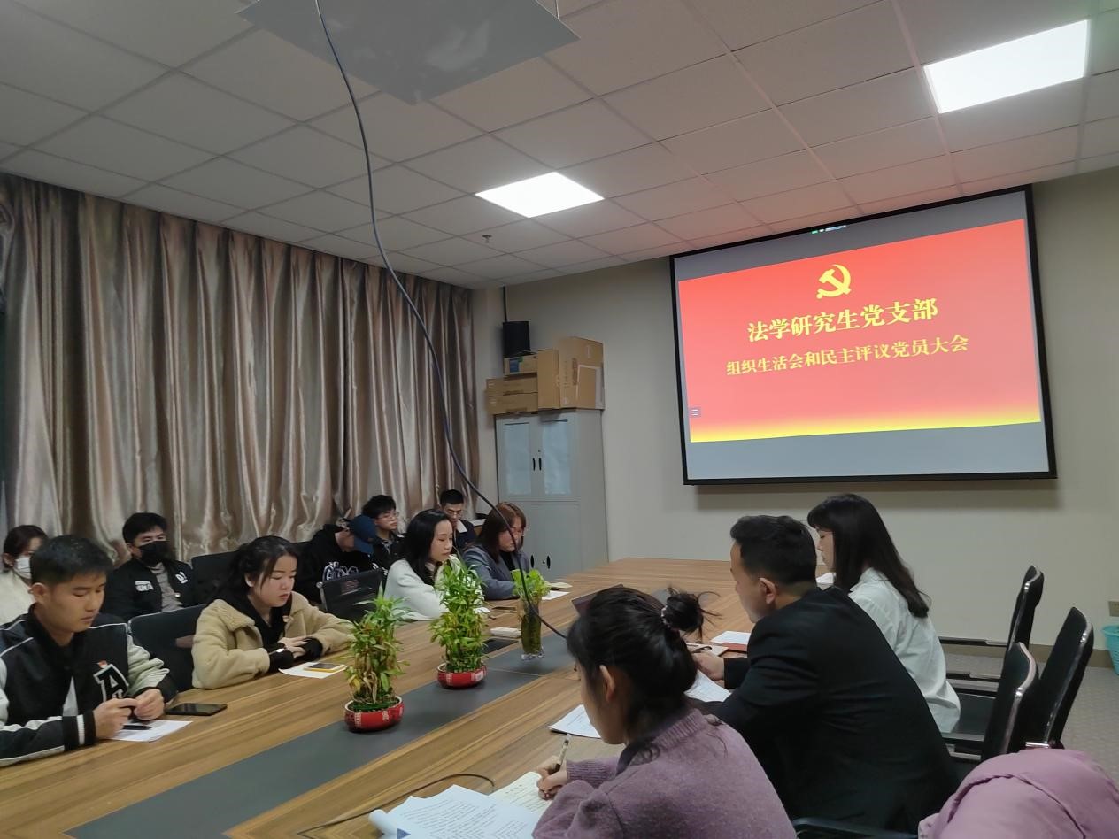 为进一步提高党员队伍素质、转变党员干部作风,增强党支部的战斗堡垒作用,法学研究生党支部于2022年3月9日晚在文荟楼806会议室,以线上线下相结合的方式召开支部2021年度组织生活会和民主评议党员大会。